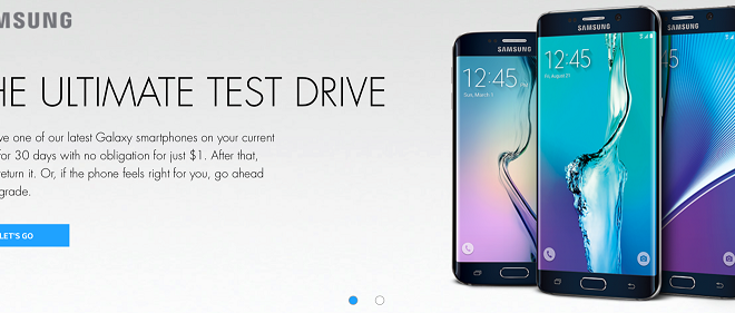 الحملة الجديدة بإسم ” الإختبار النهائي ” وتتمثل في إمكانية دفع 1 دولار فقط لتجربة أحد الهواتف الثلاثة المذكورة في العرض وهي جالكسي S6 إيدج وجالكسي نوت 5 وجالكسي S6 إيدج بلس لمدة 30 يوماً بالتمام .