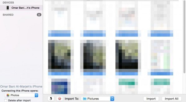 ويُتيح التطبيق إمكانية استيراد الصور بعد وصل الجهاز والدخول إليه، أو إمكانية حذف كافة الصور دفعة واحدة، وذلك عن طريق تحديدها جميعها من داخل التطبيق عن طريق اختصار لوحة المفاتيح Command+A، ومن ثم الضغط على رمز الحذف الموجود في الأسفل على شكل دائرة باللون الأحمر، وبعد ذلك الموافقة على الحذف، ليتم الأمر بسهولة كبيرة في حال كانت الصور كثيرة.