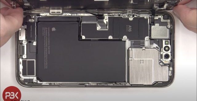 كشف مقطع فيديو جديد عن عملية تفكيك أولى ونظرة داخل آي-فون 14 برو ماكس، حيث يُظهر بطارية على شكل حرف L، ومواضع محدثة لمكونات الشاشة، وكاميرات أكبر، وأكثر من ذلك، وتم الكشف عن ذلك قبل أيام فقط من الموعد المتوقع لبدء وصول طرازات آي-فون 14 الجديدة إلى العملاء.