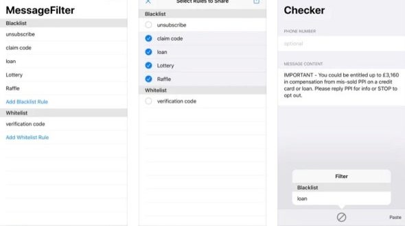 رسائل الـ SMS قد تكون مزعجة احياناً، حيث يظهر لك إشعارات مزعجة طوال الوقت إما بتخفيض، أو عروض عن منتجات، أو افتتاح محل… والمشكلة أنه لا يمكن غلق الإشعارات من تطبيق الرسائل لكل من ليس لديك في قائمة الاتصالات لأنه احياناً يكون بالفعل رسائل مهمة، وحل هذه المشكلة مع هذا التطبيق، الذي يمكنك من وضع كلمات إذا وجدت في الرسالة يتم وضعها في مجلد الـ Junk ولا يتم إرسال إشعار لك بهذه الرسالة، هذا لا يعني أن الرسالة يتم حذفها بل تظل موجودة وإنما تصنف على إنها سبام فقط. أيضاً يمكنك وضع كلمات تجعل صاحب هذه الرسالة لا يصنق على أنه سبام، مثلاً الرسائل البنكية وغيرها من الرسائل المهمة.