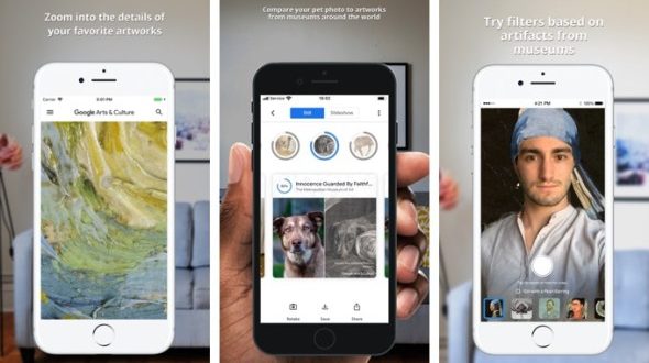 هذا التطبيق من جوجل الذي لا يعرفه الكثير هو مركز للفنون والثقافة كنوز وقصص ومعرفة أكثر من 2000 مؤسسة ثقافية من 80 دولة في متناول يدك. إطلع على أرشيف ناسا للصور المذهلة، اكتشف قصصا عن تراثنا الثقافي. إنه المدخل الخاص بك لاستكشاف الفن والتاريخ والناس وعجائب عالمنا. في أخر تحديث لهذا التطبيق تستخدم جوجل ميزة الذكاء الصناعي للتعرف على أصل أي حيوان وما أقرب الأنواع له شكلاً عبر التاريخ، التطبيق يحتوي العديد من المميزات مثل إضافة مؤثرات للصور لتحاكي لوحات فنية مشهورة.
