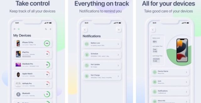 تطبيق يساعدك على تتبع جميع مستويات البطارية لكل أجهزتك في مكان واحد مع إشعارات لتذكيرك بالشحن، التطبيق لا يعمل مع أجهزة آبل فقط بل أي جهاز يدعم حالة البطارية بعر البلوتوث مثل سماعات الأذن، التطبيق مفيد جداً وله ويدجيت أيضاً ويعمل على أجهزة الماك كذلك.